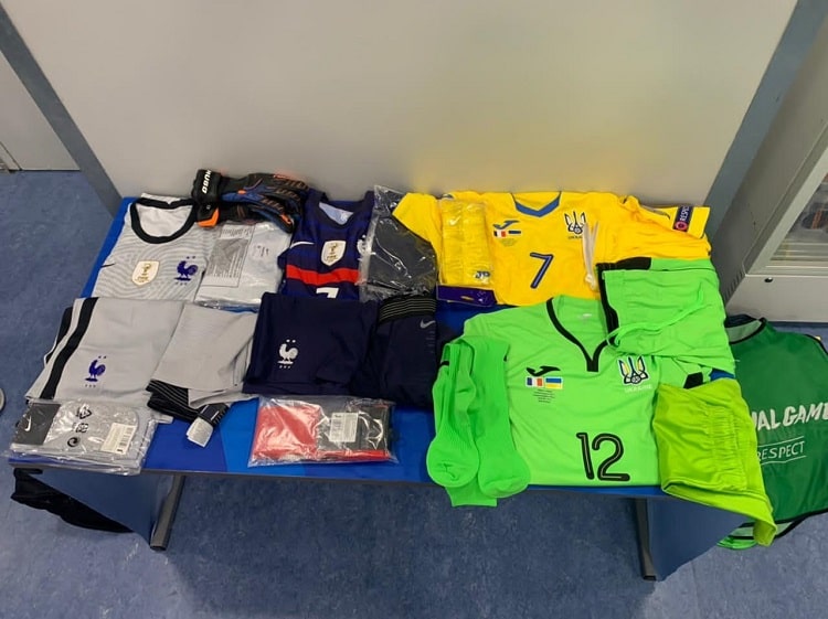 На нараді за участі представників команд та офіційних осіб матчу, яка проходила онлайн, було вирішено, що збірна України проведе зустріч у жовтому комплекті форми. Французи зіграють у синьому.