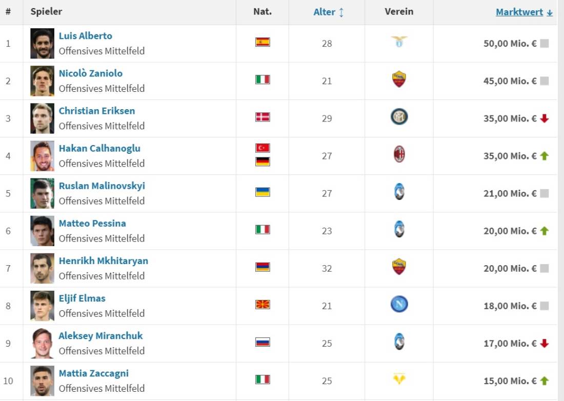 Топ-10 самых дорогих атакующих полузащитников Серии А