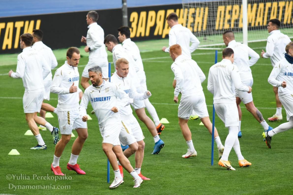 Напередодні матчу зі збірною Казахстану синьо-жовті провели передігрове тренування на полі НСК «Олімпійський».