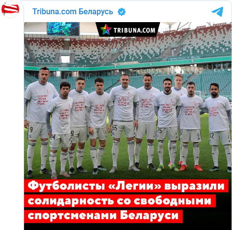 Футболисты варшавской «Легии» присоединились к акции солидарности со свободными спортсменами Беларуси, а также выразили поддержку Фонду спортивной солидарности