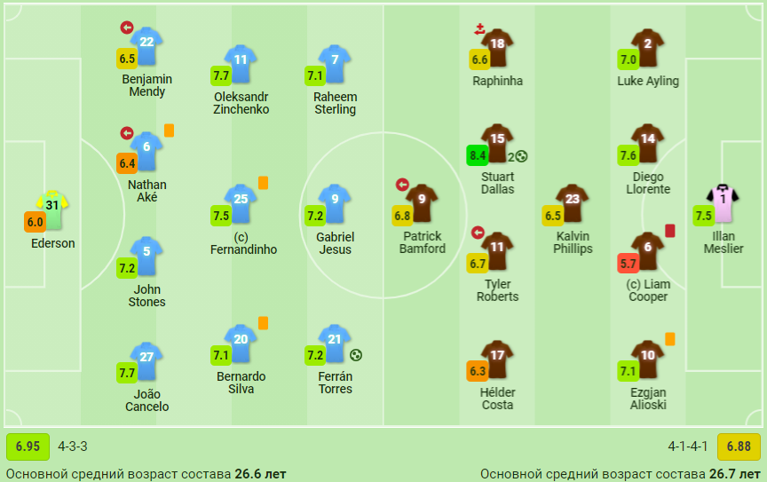 SofaScore оценил игроков матча 31-го тура АПЛ «Манчестер Сити» – «Лидс» (1:2).