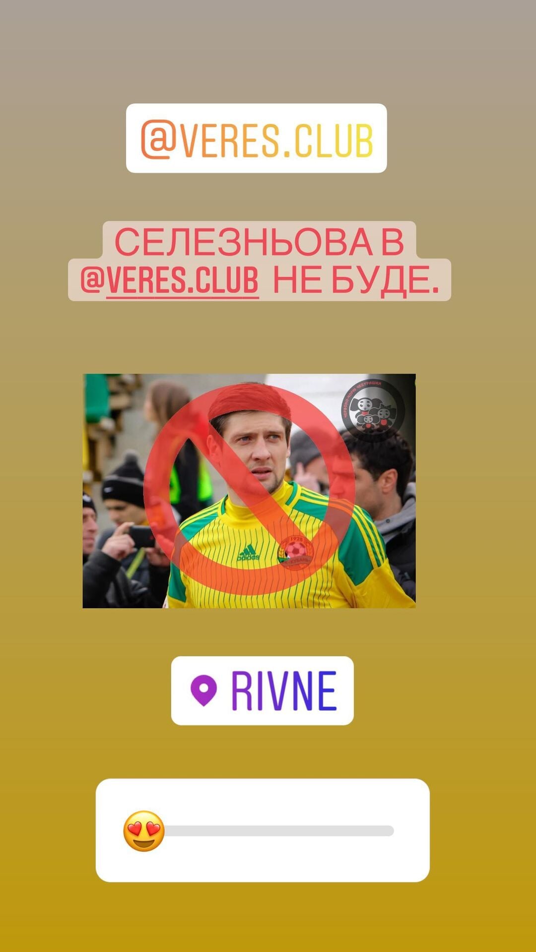 «Селезнева в «Вересе» не будет», – написал Надеин в инстаграме и прикрепил фото украинца в футболке российской «Кубани».