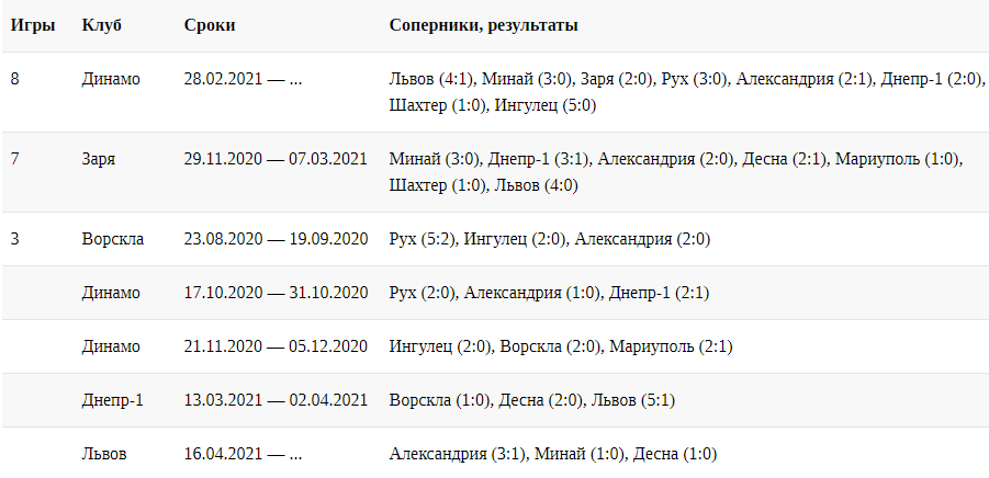 Лучшие победные серии чемпионата Украины сезона-2020/2021