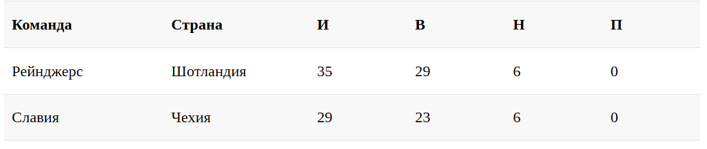 Топ-10 команд из топ-20 чемпионатов Европы с наименьшим кол-вом поражений в сезоне-2020/2021.