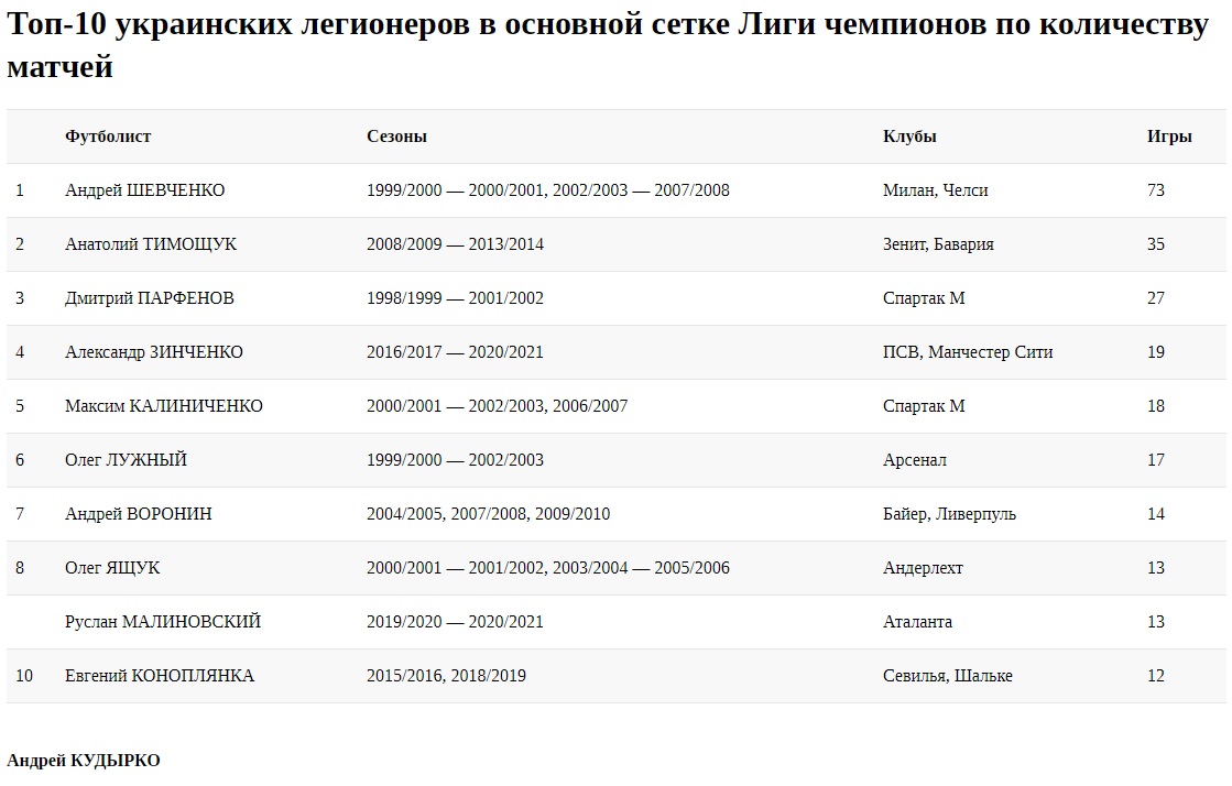 Круче Зинченко - только три кита. Топ-10 украинских легионеров в основной сетке Лиги чемпионов по количеству матчей