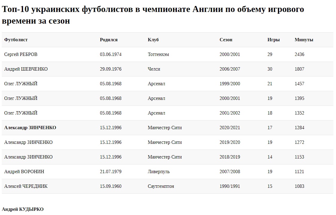 Но это не предел, ведь до финиша чемпионата остается еще четыре тура. У подопечных Хосепа Гвардиолы по плану игры с Челси (8 мая), Ньюкаслом (14), Брайтон и Хоув (18) и Эвертоном (23). Вполне возможно, что Зинченко сможет до конца сезона не просто улучшить свои же показатели, но и подвинуть в рейтинге Олега Лужного. Один, два или все три сезона экс-защитника Арсенала — узнаем в ближайшие две с половиной недели.