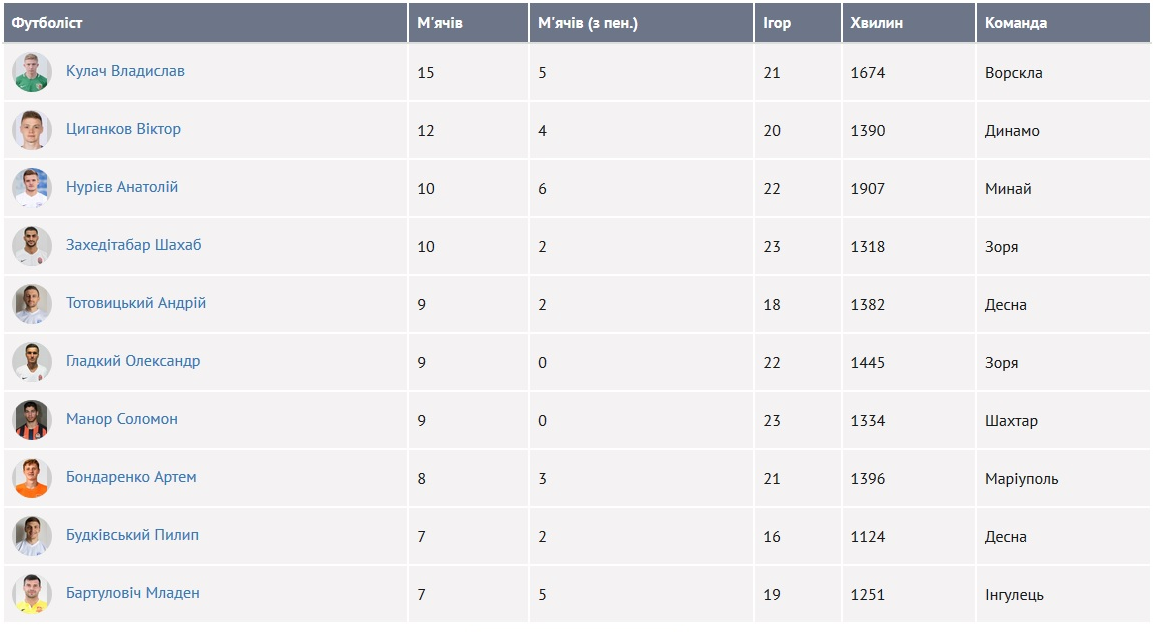 Предлагаем Вашему вниманию список лучших бомбардиров чемпионата Украины сезона 2020/2021, в котором на 2-м месте с 12-ю голами находится динамовец Виктор Цыганков.