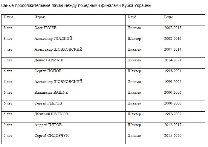 Денис Гармаш второй раз стал обладателем Кубка Украины. Свой первый кубковый триумф он пережил ни много ни мало 7 лет назад. Более продолжительные паузы между победными финалами имели только Олег Гусев и Александр Гладкий, и столько же - 7 лет - Александр Шовковский.