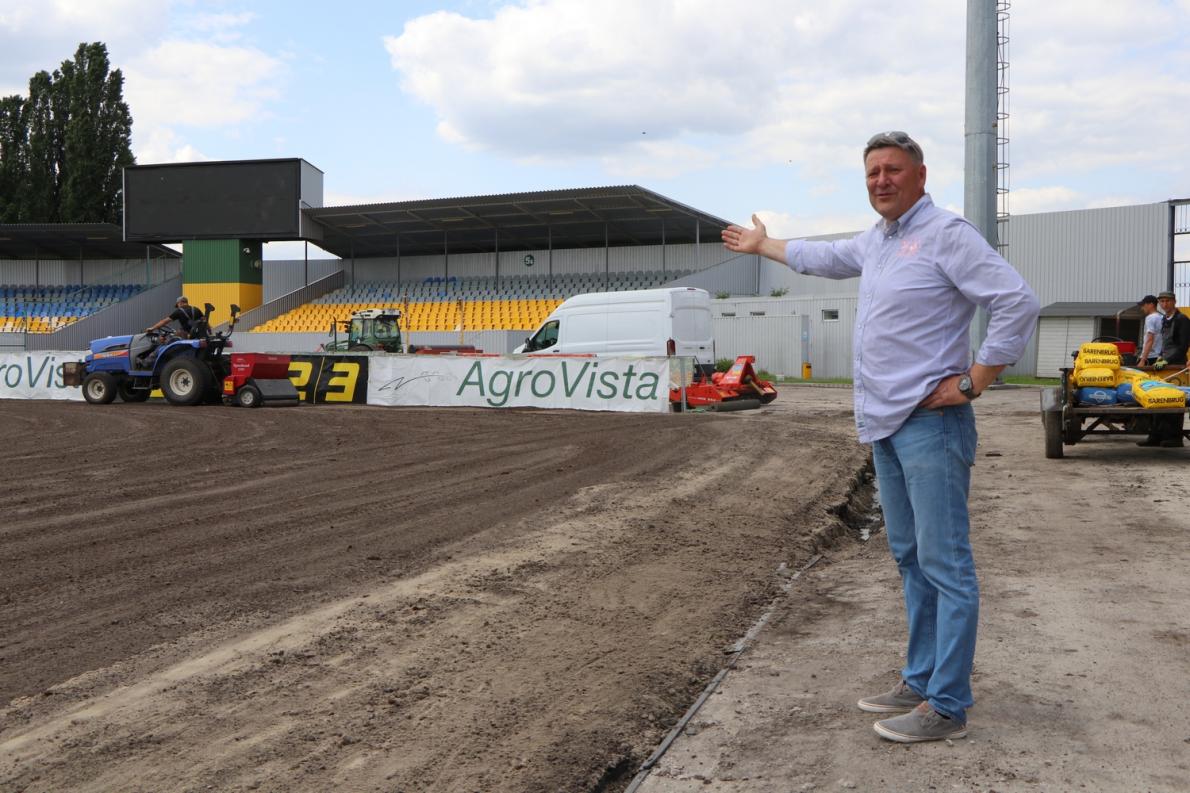В нашому кліматі для якості майбутнього газону важливу роль відіграють погодні умови. Тому завдяки ранньому завершенню чемпіонату (через ігри національної збірної) цього року нам вдалося реалізувати свої давні плани. Попередній газон ми застели ще в 1998 році. Хоча сам футбольний газон може «жити» достатньо довго, з часом на ньому з’являється багато трави, якої не повинно бути на полі, що ускладнює «життя» футболістам.