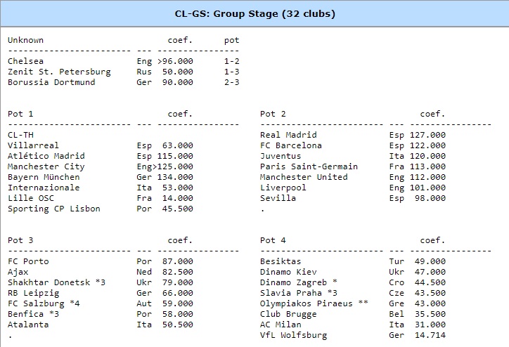 В случае прохода в групповой этап турнира именно эти команды попадают в третью корзину, но вылет двух из них позволит «Бешикташу» и «Динамо» занять освободившееся места.
