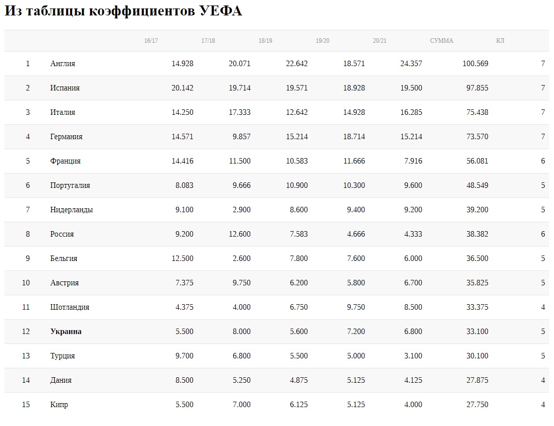 К сожалению, нынешний цикл стал провальным для Украины — уступив спор Шотландии, впервые с 2008 года мы опустились ниже девятой позиции (заняли 12-ю), что будет стоить прямой путевки в групповой раунд Лиги чемпионов. Речь идет о сезоне-2022/2023, поскольку в следующей кампании (2021/2022), которая формируется на базе таблицы 2020 года, такая привилегия у нас еще остается.