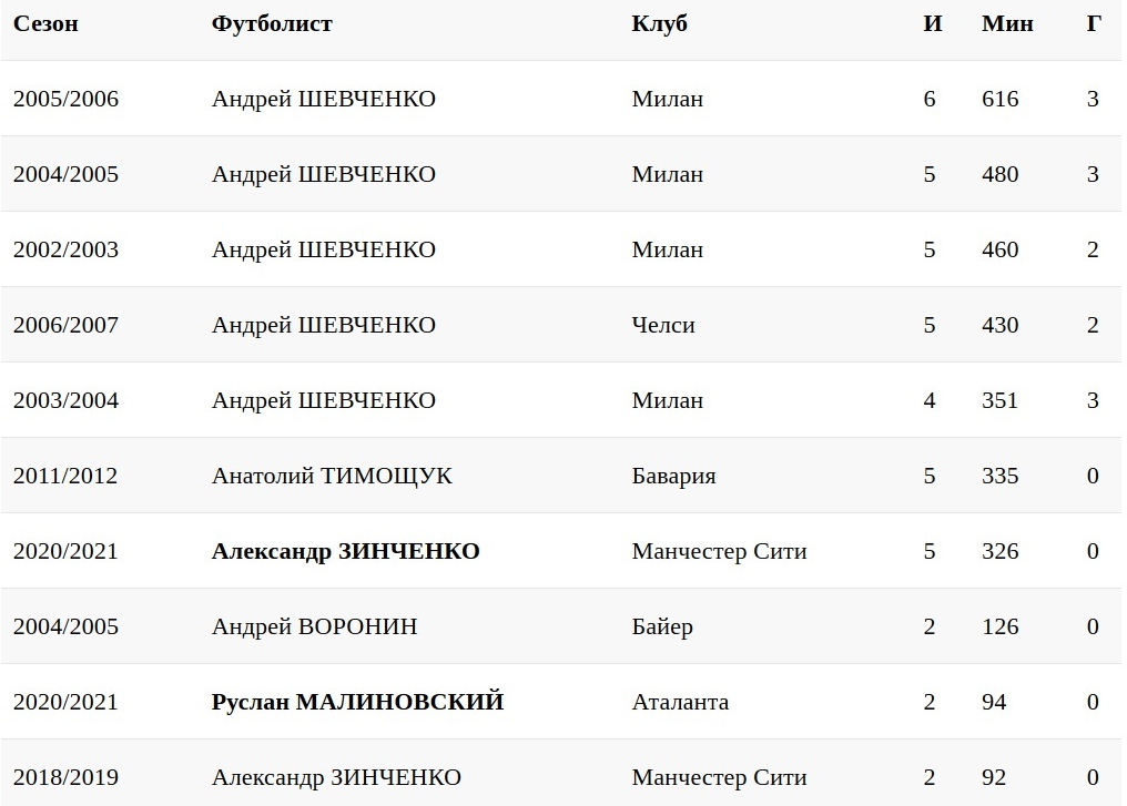 Выше — только Андрей Шевченко (пять сезонов — все в топ-5) и Анатолий Тимощук (один сезон).