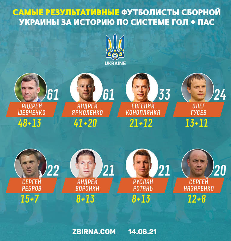 Самые результативные футболисты сборной Украины за историю по системе гол + пас