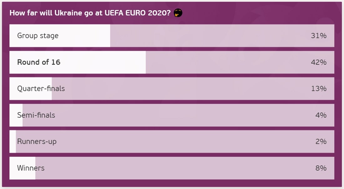 По горячим следам матча Нидерланды - Украина (3:2), в соответствующем разделе сайта УЕФА было проведено голосование среди читателей ресурса. Вопрос был поставлен так: «Как далеко продвинется сборная Украины на Евро-2020?», пишет zbirna.com.