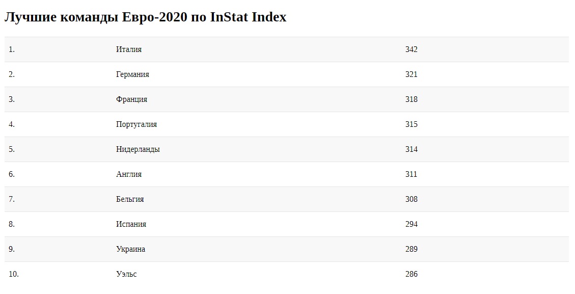 Компания InStat обнародовала рейтинг эффективности игры после двух туров группового турнира Евро-2020. Сборная Украины занимает в нем девятое место. Лучшая команда — Италия, пишет zbirna.com.