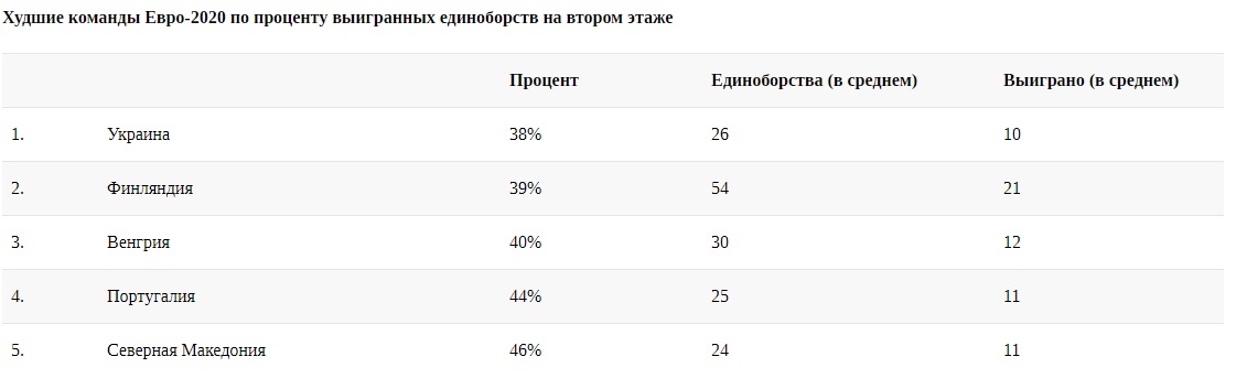 Сборная Украины - худшая команда ЕВРО-2020 по проценту выигранных единоборств на втором этаже