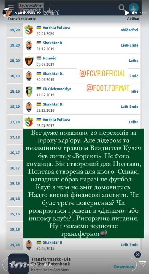 Журналист «Футбольного формата» Олег Ящук на своей странице в Инстаграме прокомментировал новость о том, что экс-форвард полтавской «Ворсклы» Владислав Кулач отправился на тренировочный сбор с «Динамо».