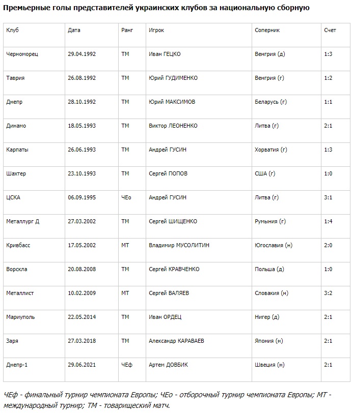 В поединке со шведами (2:1) голевой счет в рядах сборной Украины открыл 23-летний форвард «Днепра-1» Артем Довбык. Он стал игроком 14-го украинского клуба, чьи полпреды забивали за главную команды страны.