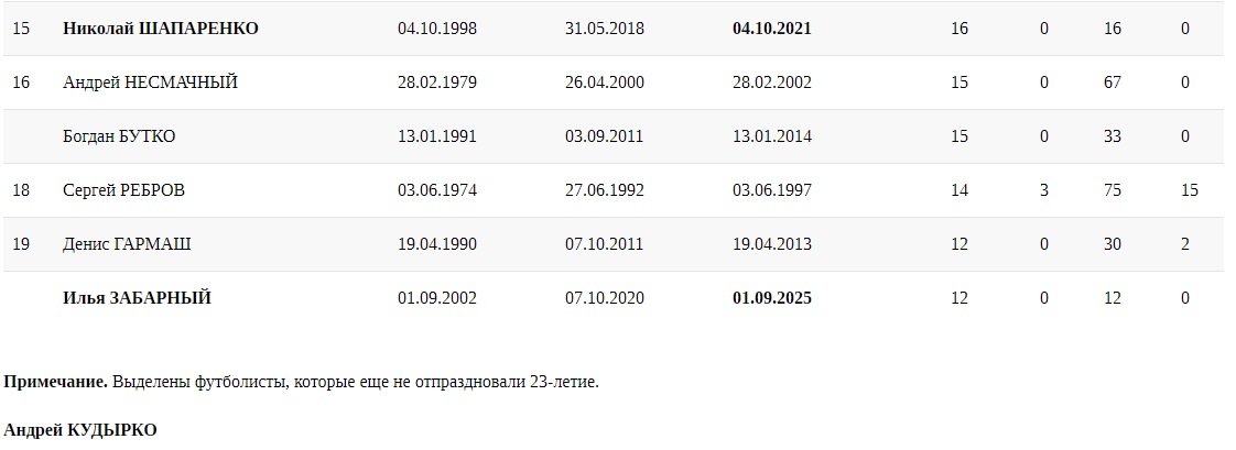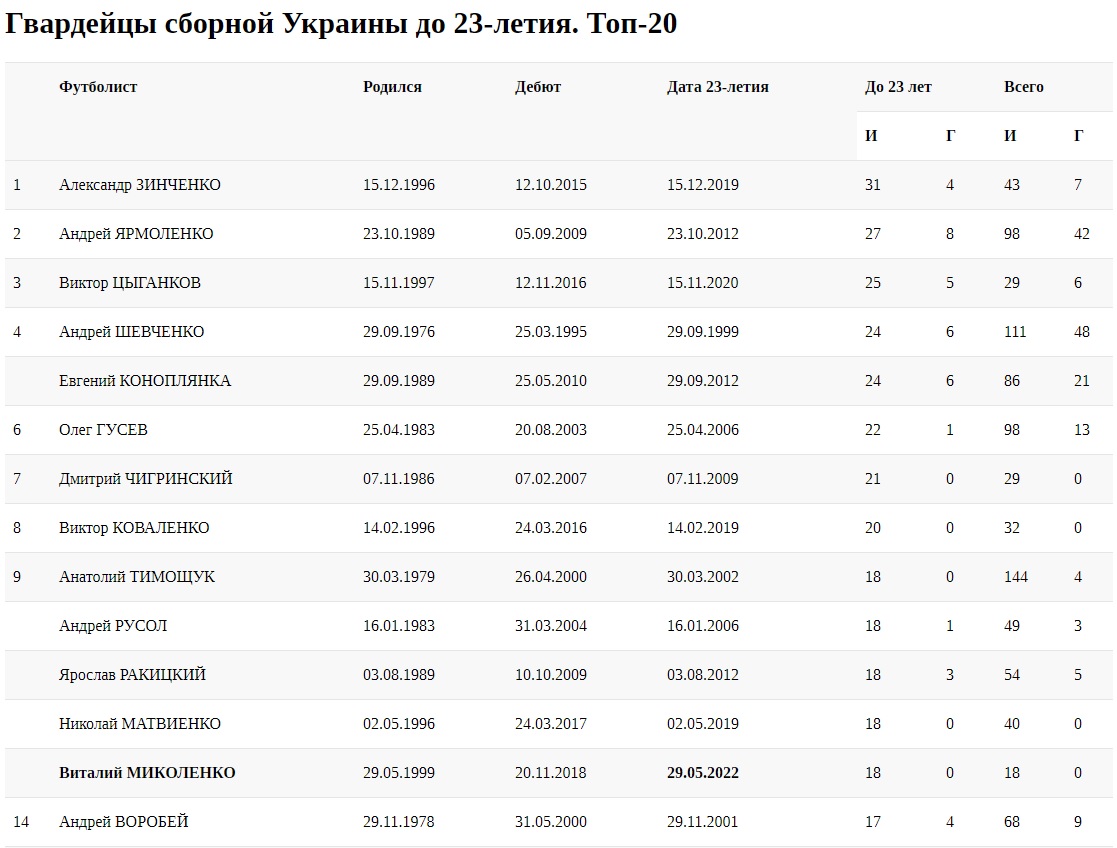 Словом, темпы у Забарного просто космические (на фоне главных гвардейцев сборной — Анатолия Тимощука и Андрея Шевченко — в том числе). И сейчас он вошел в топ-20 гвардейцев сборной Украины до... 23-летия. Хотя 23 ему исполнится только 1 сентября 2025 года.