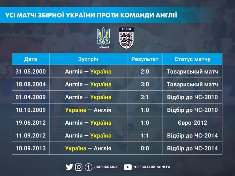 На жаль, поки що похвалитися вдалою статистикою з англійцями наша команда не може: чотири матчі закінчилися перемогою британців, одного разу свято було на українській вулиці, ще два поєдинки завершилися внічию.