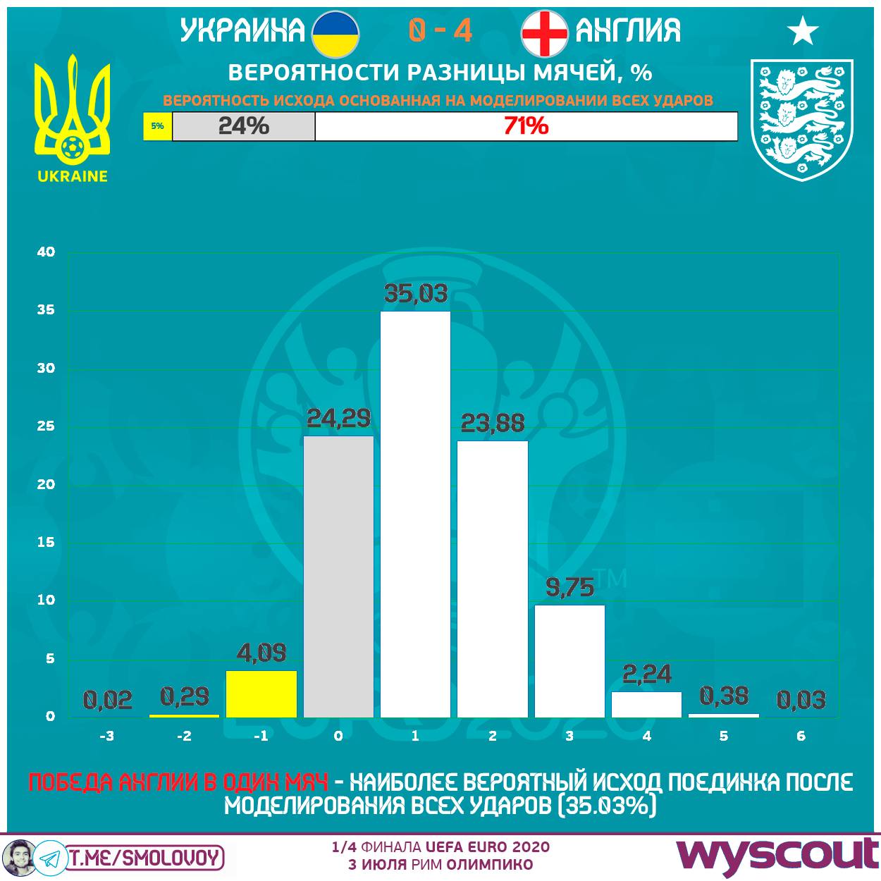Знаете какой была вероятность победы Англии с разницей в 4 мяча? 2.24%... Два целых и двадцать четыре сотых процента.