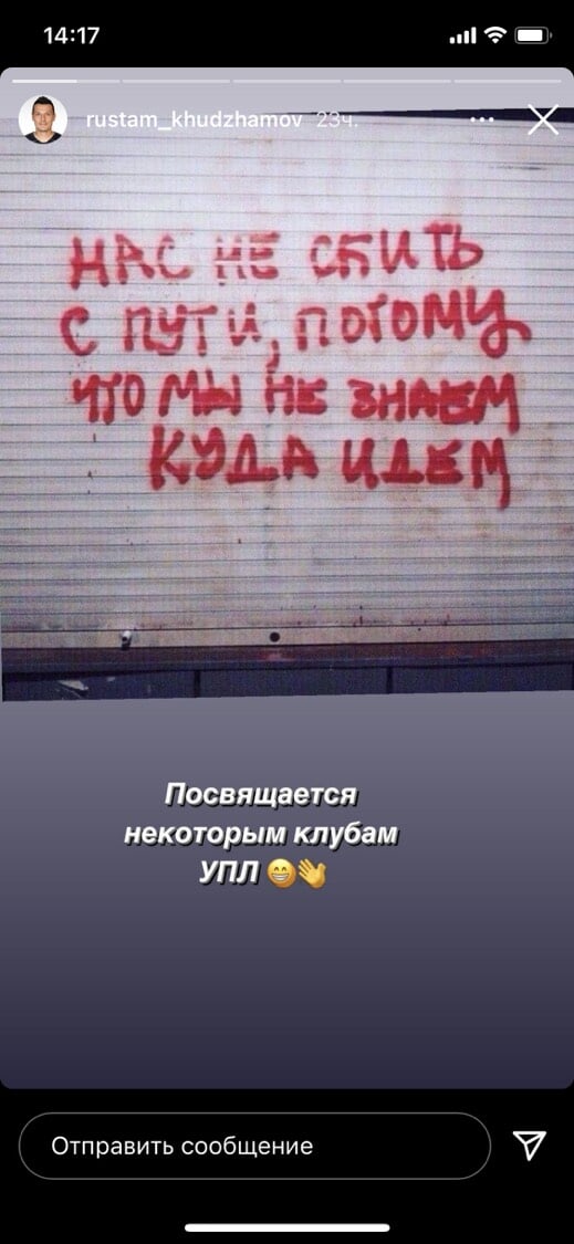 Худжамов добавил: «Посвящается некоторым клубам УПЛ».