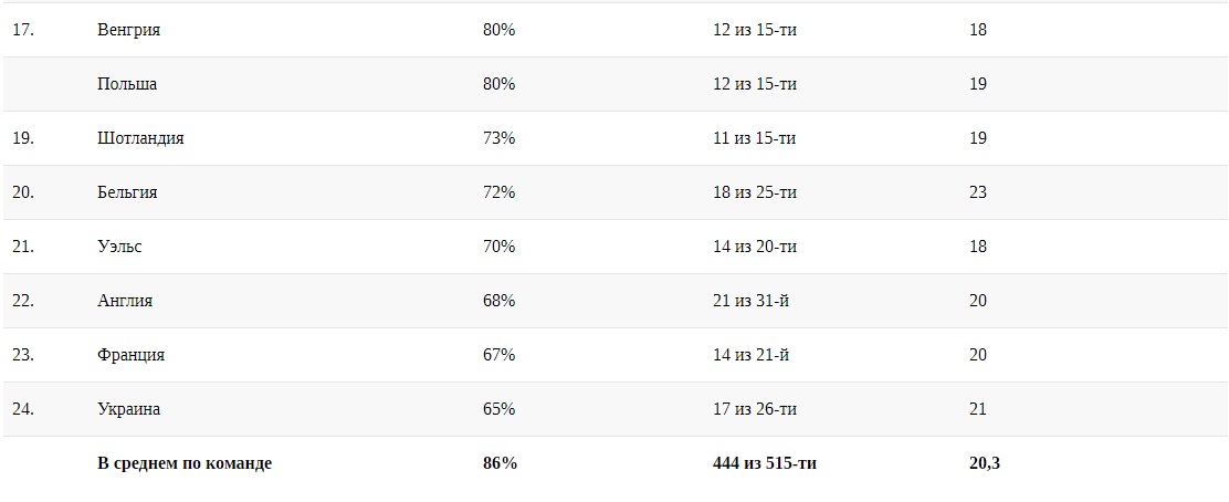 Уже год в футболе преимущественно работает правило пяти замен, пишет zbirna.com. В дополнительное время можно делать шестую, а по определенным медицинским показаниям — и седьмую. Семь квот, кстати, использовали в полуфинале турнира тренеры сборной Дании, поменяв в овертайме травмированного игрока. Датчане являются одной из трех сборных, использовавших на турнире 100% замен. В самом конце этого рейтинга расположилась сборная Украины. Андрей Шевченко сделал 17 замен из 26-ти, а это лишь 65% от максимально возможного. Впрочем, у наставника англичан Гарета Саутгейта еще больше неиспользованных квот — 10. Но общий процент пока чуть выше.