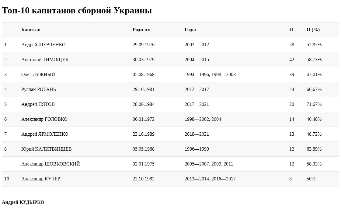 Все матчи Евро-2020 с капитанской повязкой провел Андрей Ярмоленко, пишет zbirna.com. И довел общее количество поединков, которые он начинал в сборной Украины в статусе капитана, до 13-ти. Это позволило ему оторваться от Александра Кучера, обойти Юрия Калитвинцева и Александра Шовковского, а также вплотную подобраться к Александру Головко.
