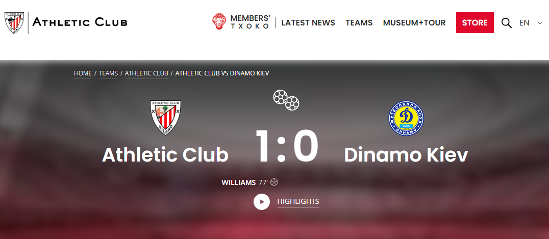 Хотя никто не мешает,и на официальном сайте Динамо, написать ,,Атлетико Бильбао"..