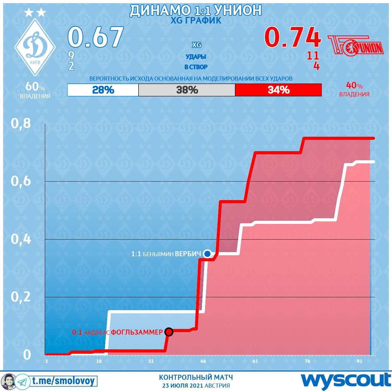 Гол Вербича (0.2 xG) - второй и последний удар Динамо в створ в матче.