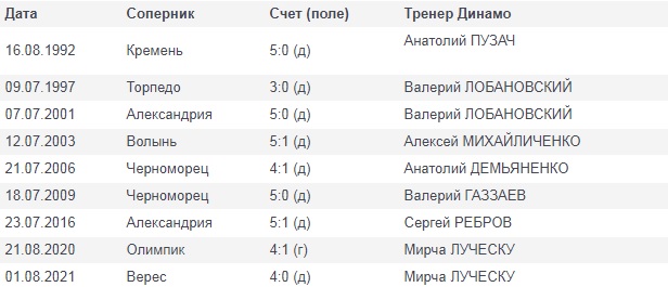 Все победы с крупным счетом в первых матчах «Динамо» в чемпионатах Украины