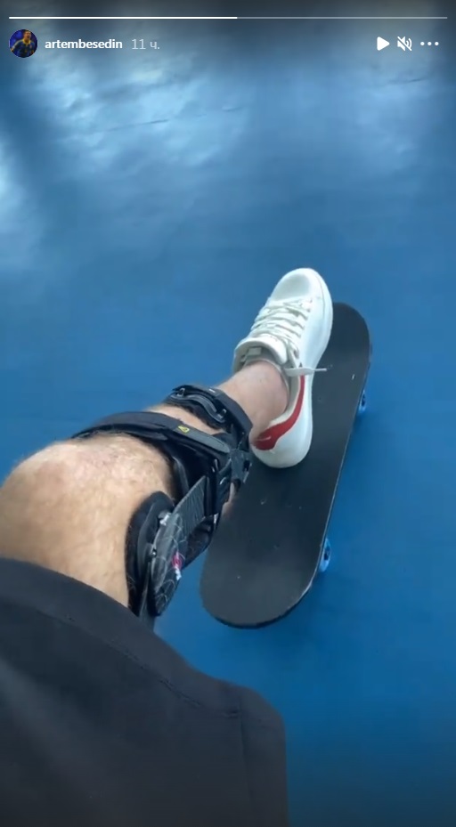Не обошлось без скейта. Беседин показал, как тренирует поврежденную ногу