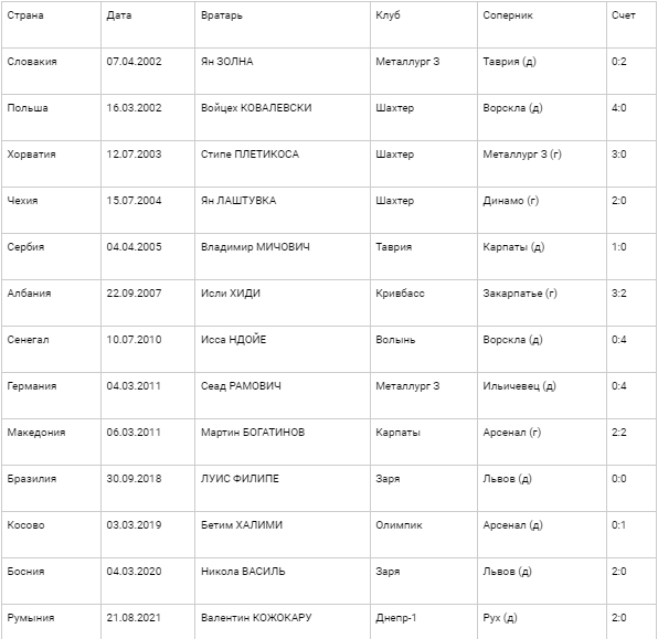 Премьерные матчи вратарей-представителей стран дальнего зарубежья в чемпионатах Украины