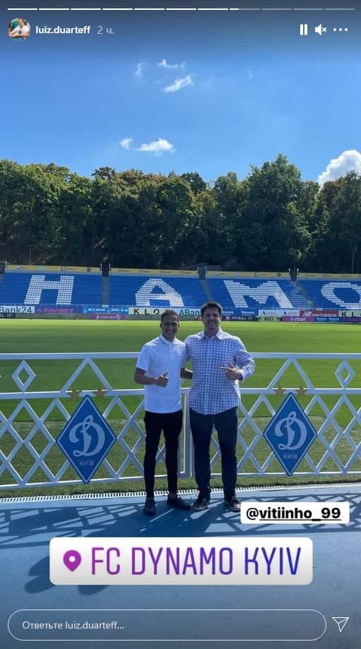 Бразильский полузащитник Витинью, который в скором времени должен подписать контракт с "Динамо", сфотографировался на стадионе имени Лобановского.