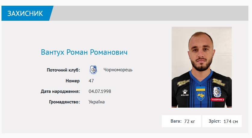 "Черноморец" внес в заявку на сезон 2021/22 Премьер-лиги динамовца Романа Вантуха.