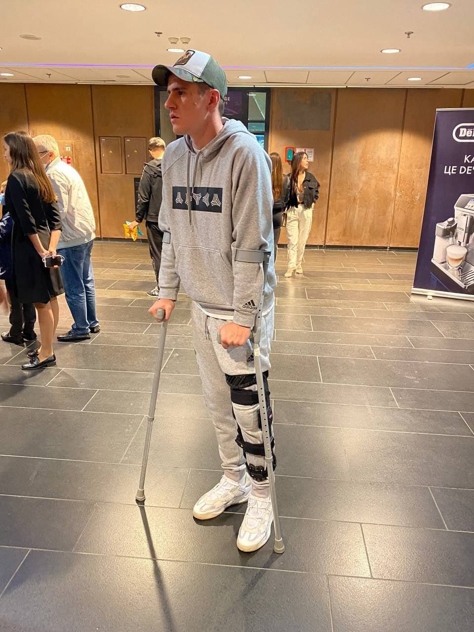 Костыли не помеха. Беседин приехал на стадион посмотреть игру Украины с Францией