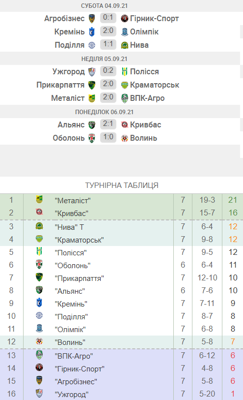 Перша ліга. "Металіст" - у відриві, а "Альянс" зупиняє "Кривбас"