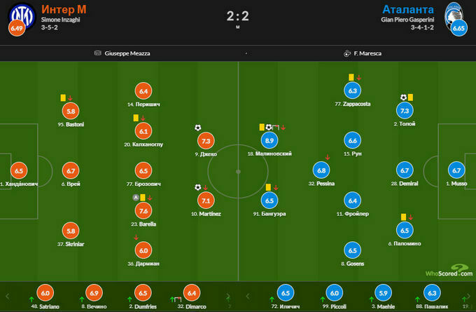 28-річний півзахисник «Аталанти» і збірної України Руслан Малиновський взяв участь у виїзному поєдинку 6-го туру чемпіонату Італії проти міланського «Інтера» (2:2).