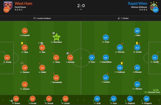 У четвер, 30 вересня «Вест Хем» у другому турі Ліги Європи вдома обіграв віденський «Рапід» - 2:0. Андрій Ярмоленко вийшов в основі «Вест Хема» на матч і був замінений на 76-й хвилині на Пабло Форнальса.