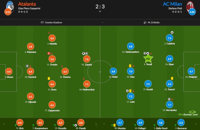 А найкращим гравцем став хавбек «Мілана Сандро Тоналі, який отримав 8.8.