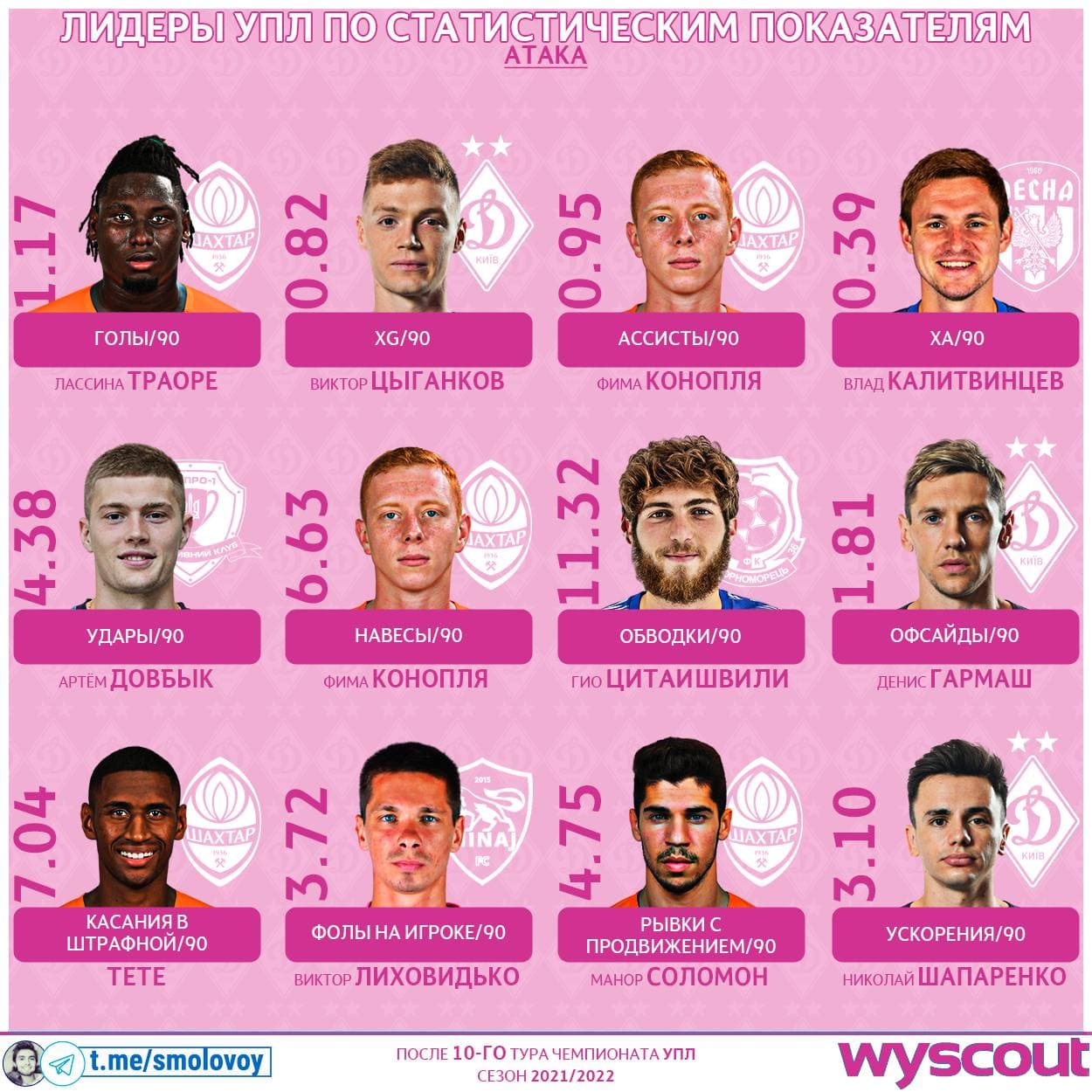 Лідери УПЛ за статистичними показниками після 10-го туру: атака