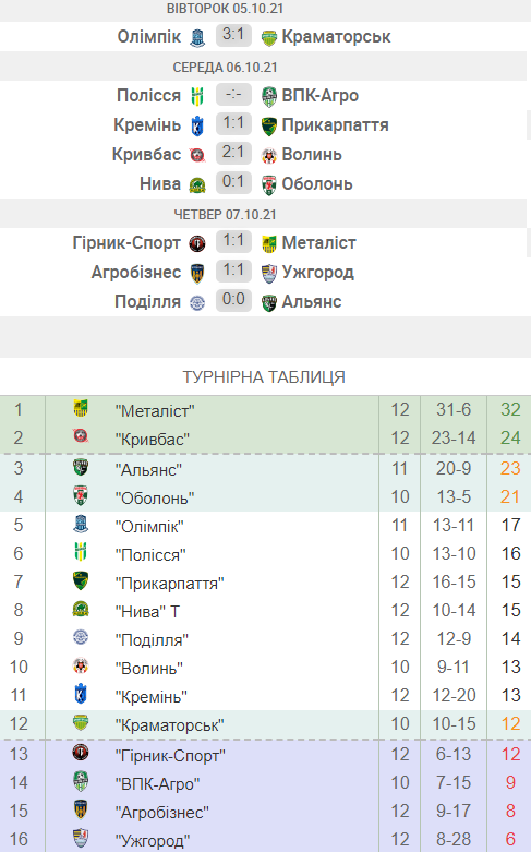 Завершували 12-й тур два протистояння в Хмельницькій області. «Поділля» приймало одного з лідерів - «Альянс». У першому таймі рахунок не було відкрито, до речі, у стартовому складі не було лідерів гостей - Вячеслава Піднебенного, Костянтина Ярошенка та Сергія Загинайлова. Після перерви суперники значно краще діяли в обороні і, зрештою, усе закінчилося підписанням мирної угоди - 0:0.