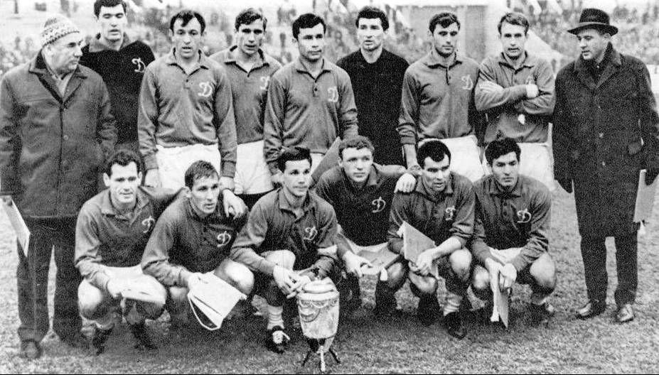 * На фото динамівці після фіналу Кубка СРСР-1966. На жаль, фотографій хорошої якості поєдинку проти мінського «Динамо» не збереглося.