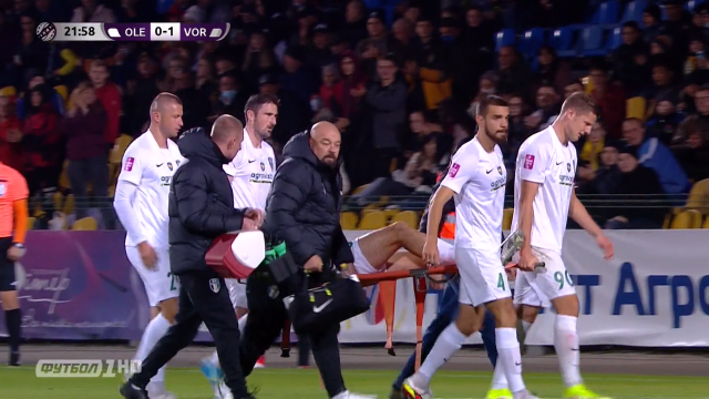На 20-й хвилині матчу він боровся за верховий м'яч з Олександром Скляром, невдало приземлився на газон.