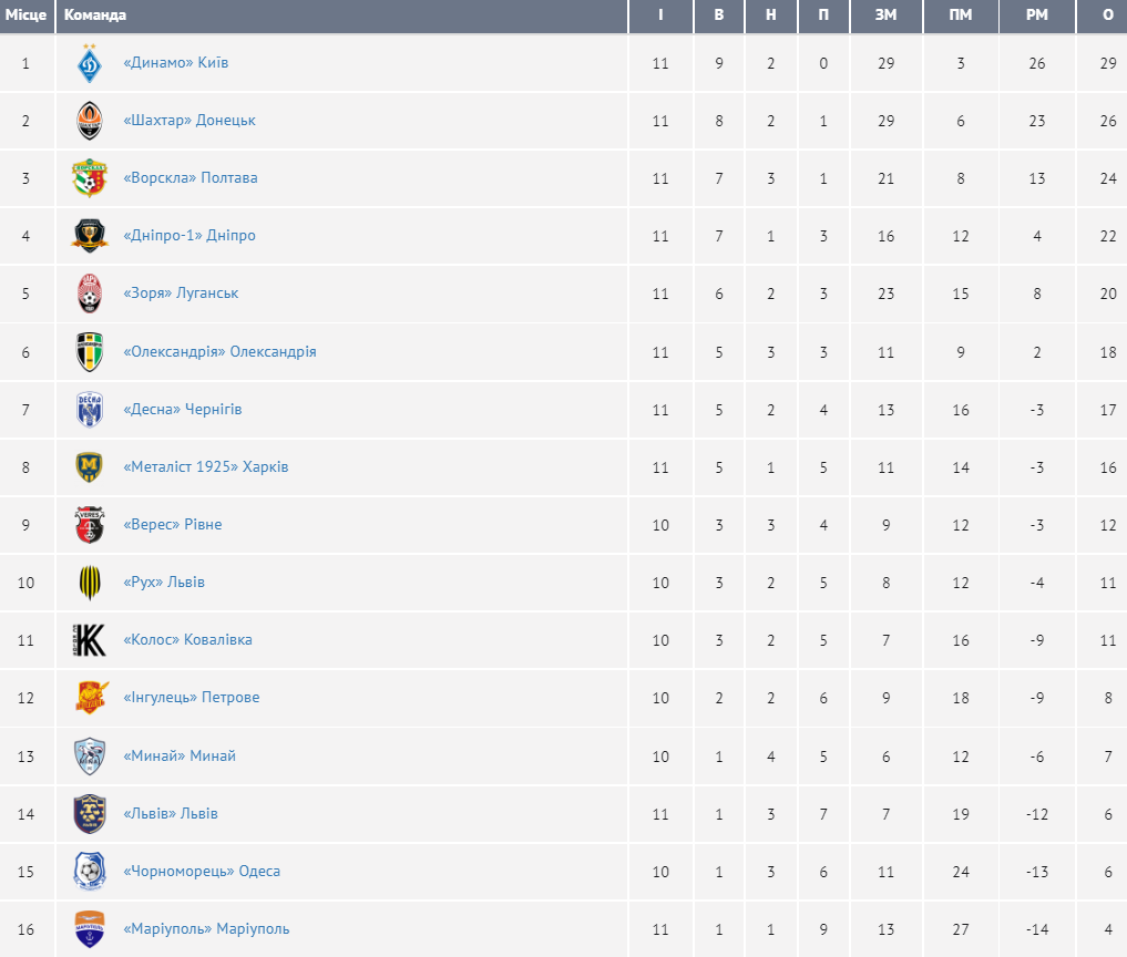 Другу третину чемпіонату "Динамо" починає лідером. Як виглядає таблиця УПЛ після 11-го туру