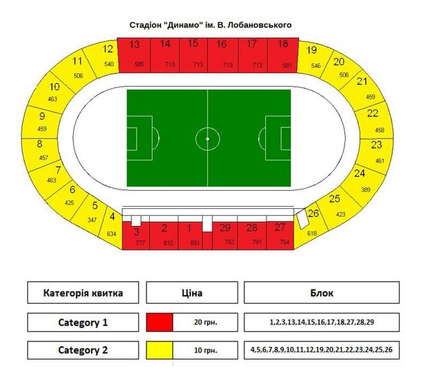 Вартість квитків на матч складатиме 20 гривень – для секторів на центральних трибунах стадіону, та 10 гривень – на секторах за воротами.