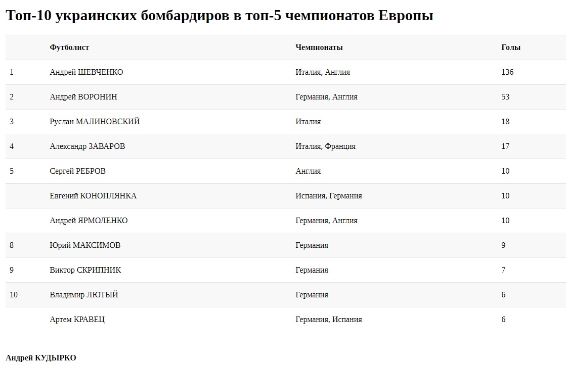 Довгий час саме Заваров і був найкращим нашим бомбардиром в топ-5 чемпіонатів Європи. Поки не з'явився Андрій Шевченко. А за ним розкрив свій потенціал Андрій Воронін.