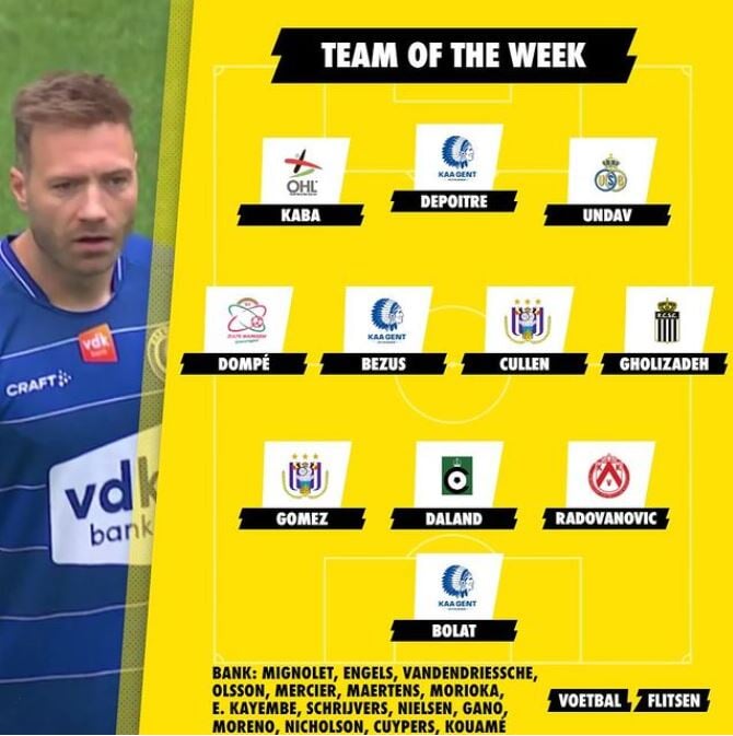 Український хавбек "Гента" Роман Безус включений до збірної 12-го туру чемпіонату Бельгії за версіями видань VP, Sport/Foot Magazine і Voetbal Flitsen.