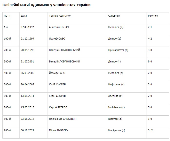 У 13-му турі «Динамо» провело 900-й матч у чемпіонатах України. Волею календаря кияни стали першим клубом, який досягнув цього рубежу, випередивши на три години «Шахтар». Ювілей динамівці собі не зіпсували, здобувши перемогу над «Маріуполем».