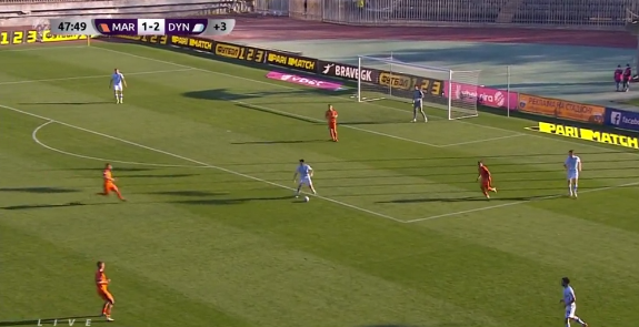 На 13-й хвилині після навісної подачі з флангу м'яч влучив у руку Олександру Караваєву. Романов не свиснув. Не втрутився у цей епізод і VAR. Насправді, важко оцінювати, чи був гравець "Динамо" в межах карного майданчика, або ж за його межами. Та якщо VAR не втрутився - значить, був за межами.